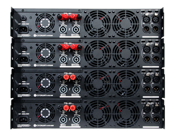 性能全面的Crown KVS 系列功放擁有卓越的可靠性與穩定性,該系列共有4個型號:KVS300 / KVS500 / KVS700 / KVS1000,其輸出功率的覆蓋范圍從2*300W至2*1000W,能夠完全勝任如KTV等娛樂場所的應用。